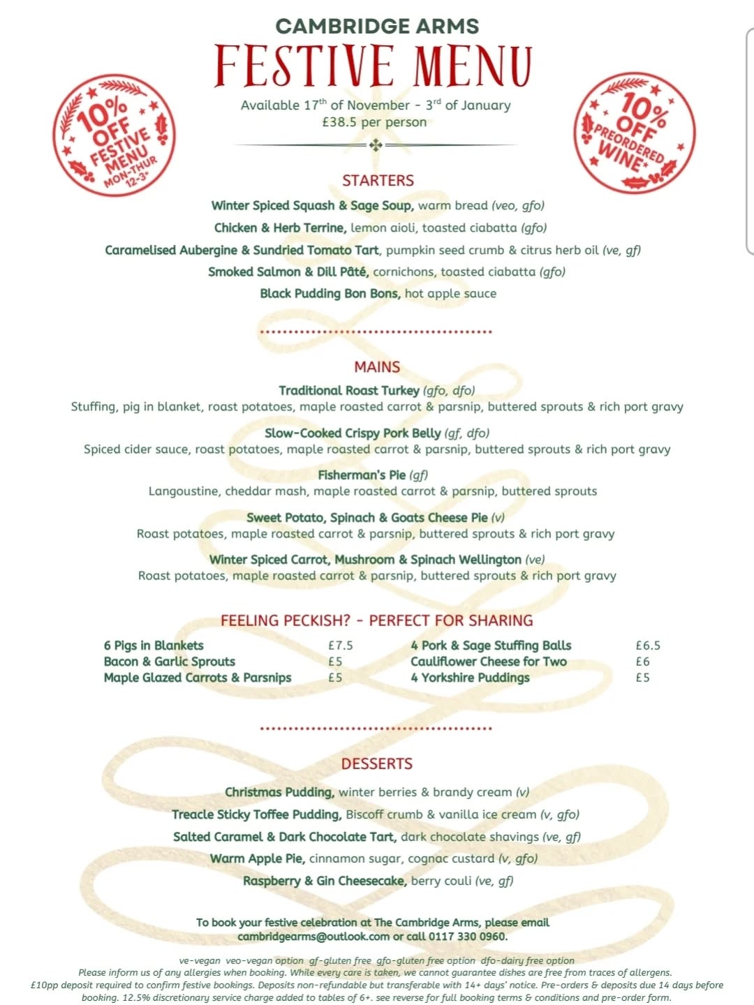 Come for the Christmas spirit, stay for the atmosphere, and celebrate the season the way it should be done — at the Cambridge Arms!